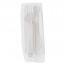 Posate in plastica trasparente confezionate a due con coltello, forchetta e tovagliolo. In confezione da 100 pezzi.